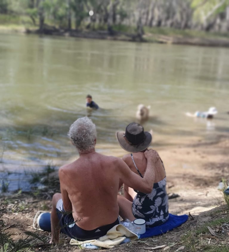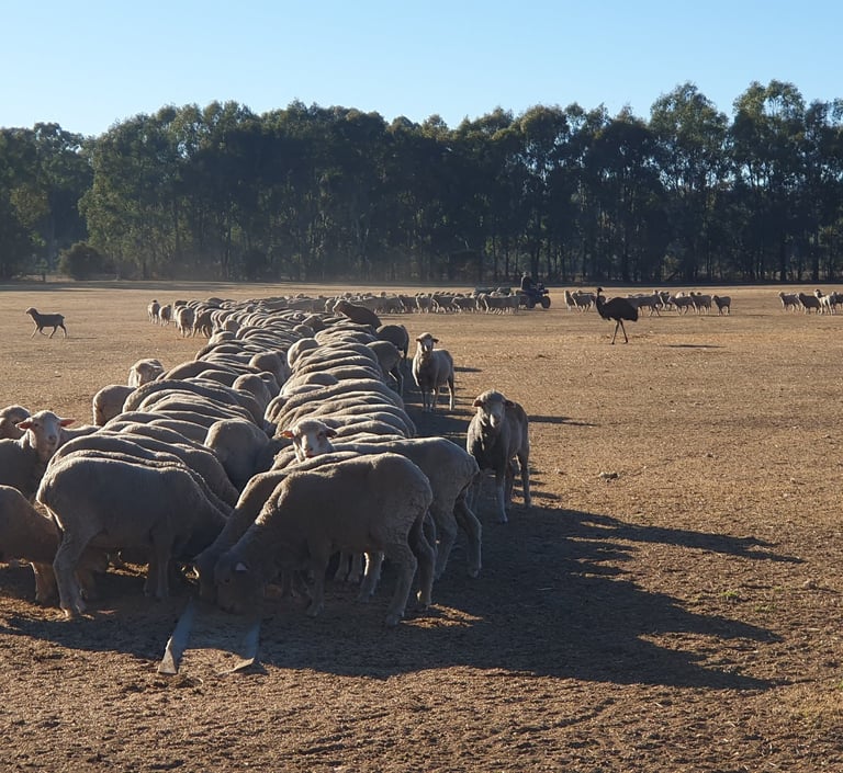 Simon and Philippa have farmed Brimin Lodge for 30 years and love to share their 150 ha piece of paradise on the Murray River with others. Just the two of them live here now, along with our sheep dogs Jimma and Missy, horses Yarraman and Torch, Goa the peacock, chooks and geese, and mobs of sheep, kangaroos and emus. They have a passion for native wildlife and biodiversity and work that in with farming activities, agroforestry, and holiday accommodation. They love travelling and meeting travellers, and recently spent 2 years volunteering on a farm in Ethiopia.